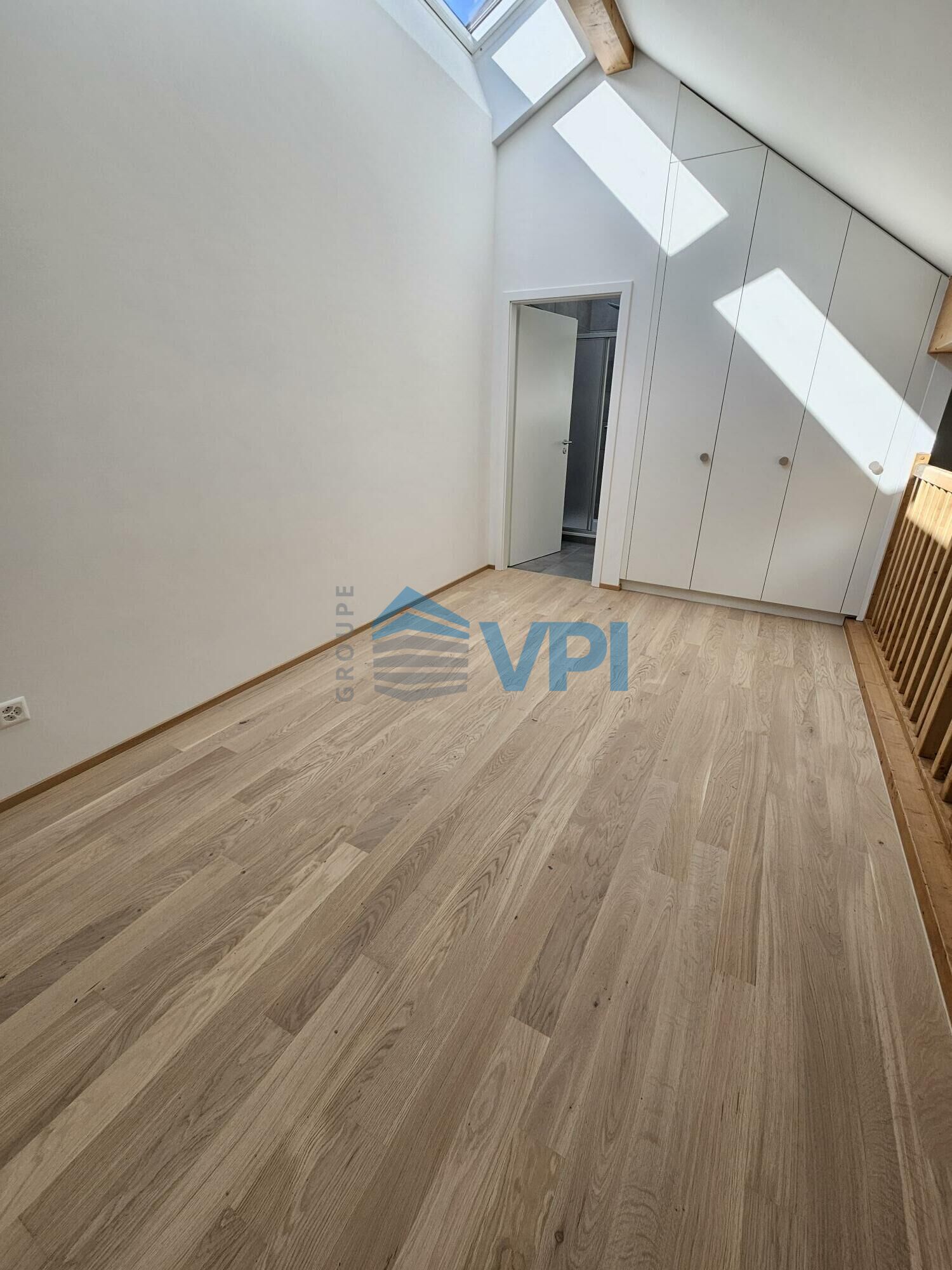 La mezzanine est équipée d'armoire encastrées et de velux avec stores automatiques.