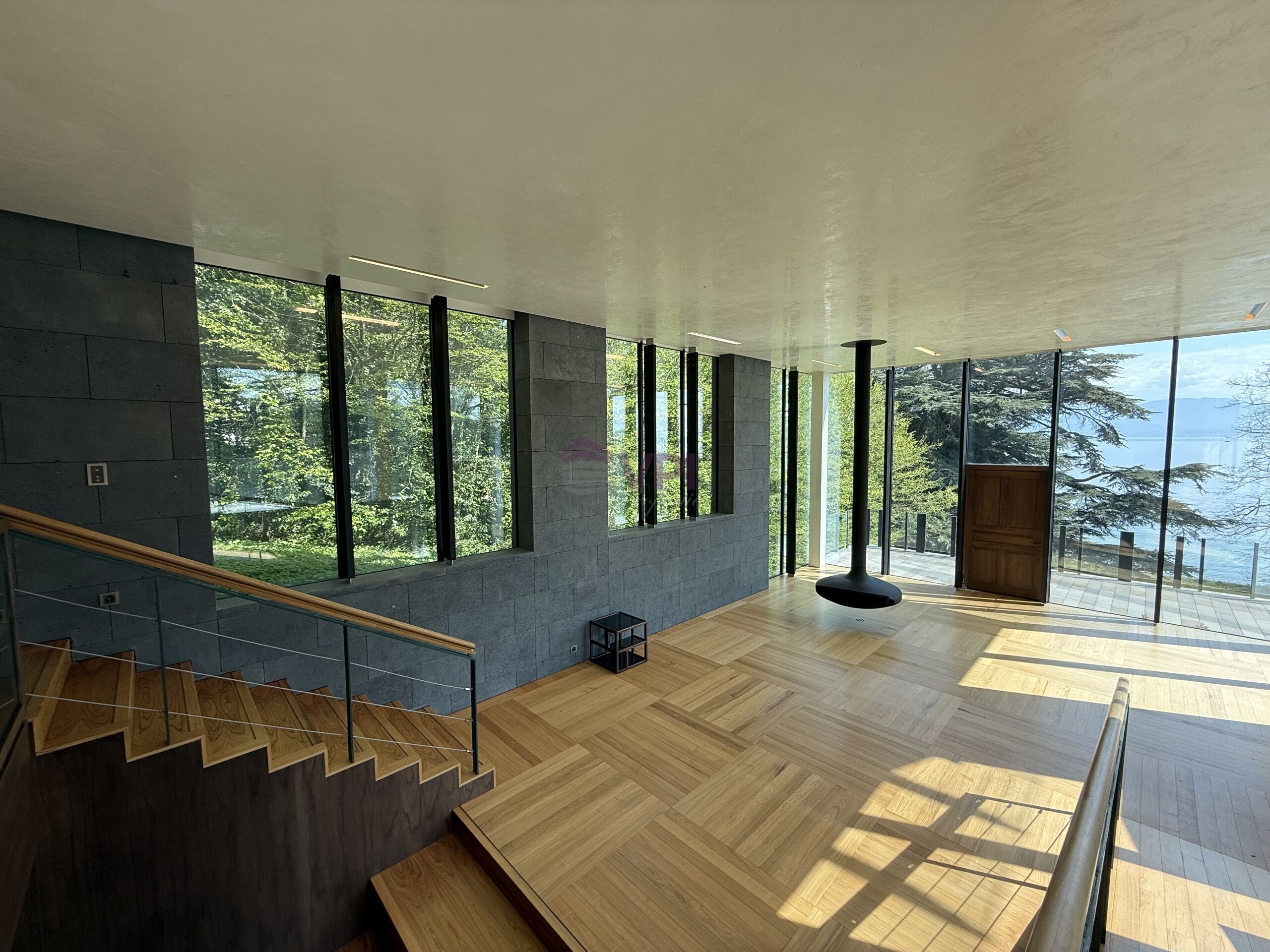 - Grand salon avec cheminée et accès à la terrasse