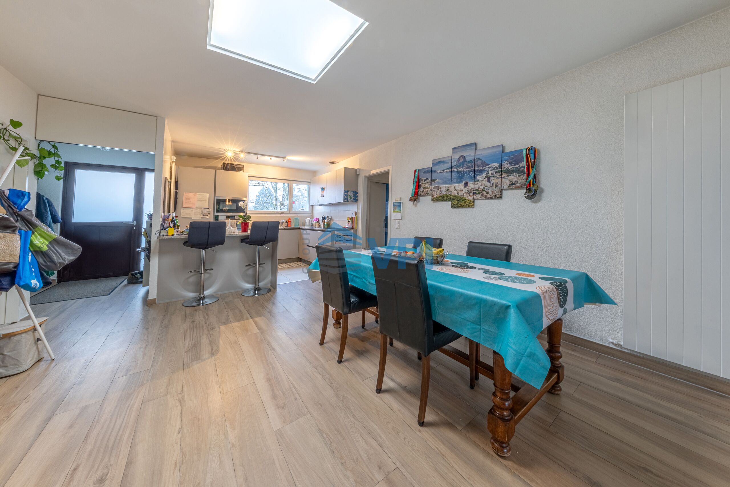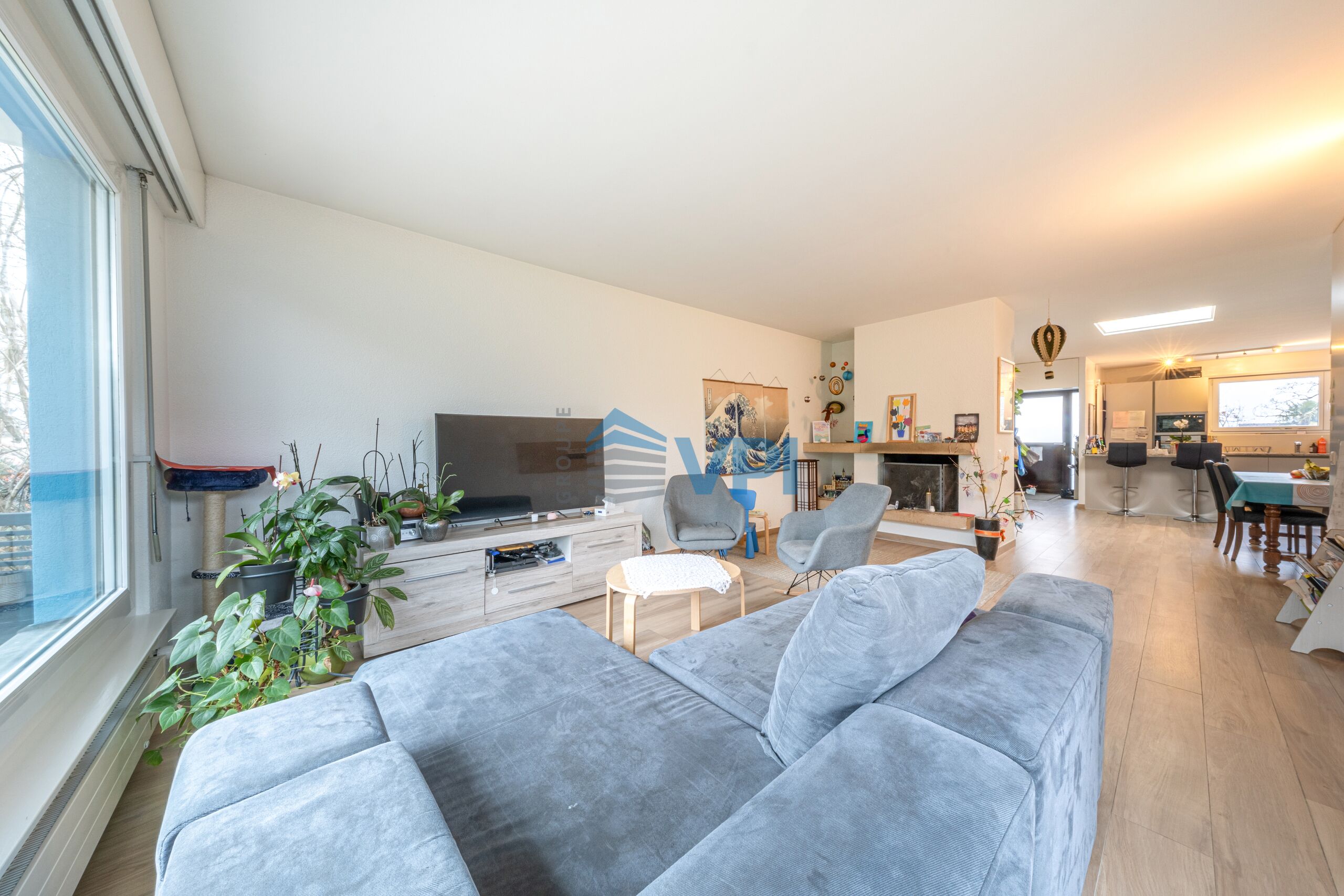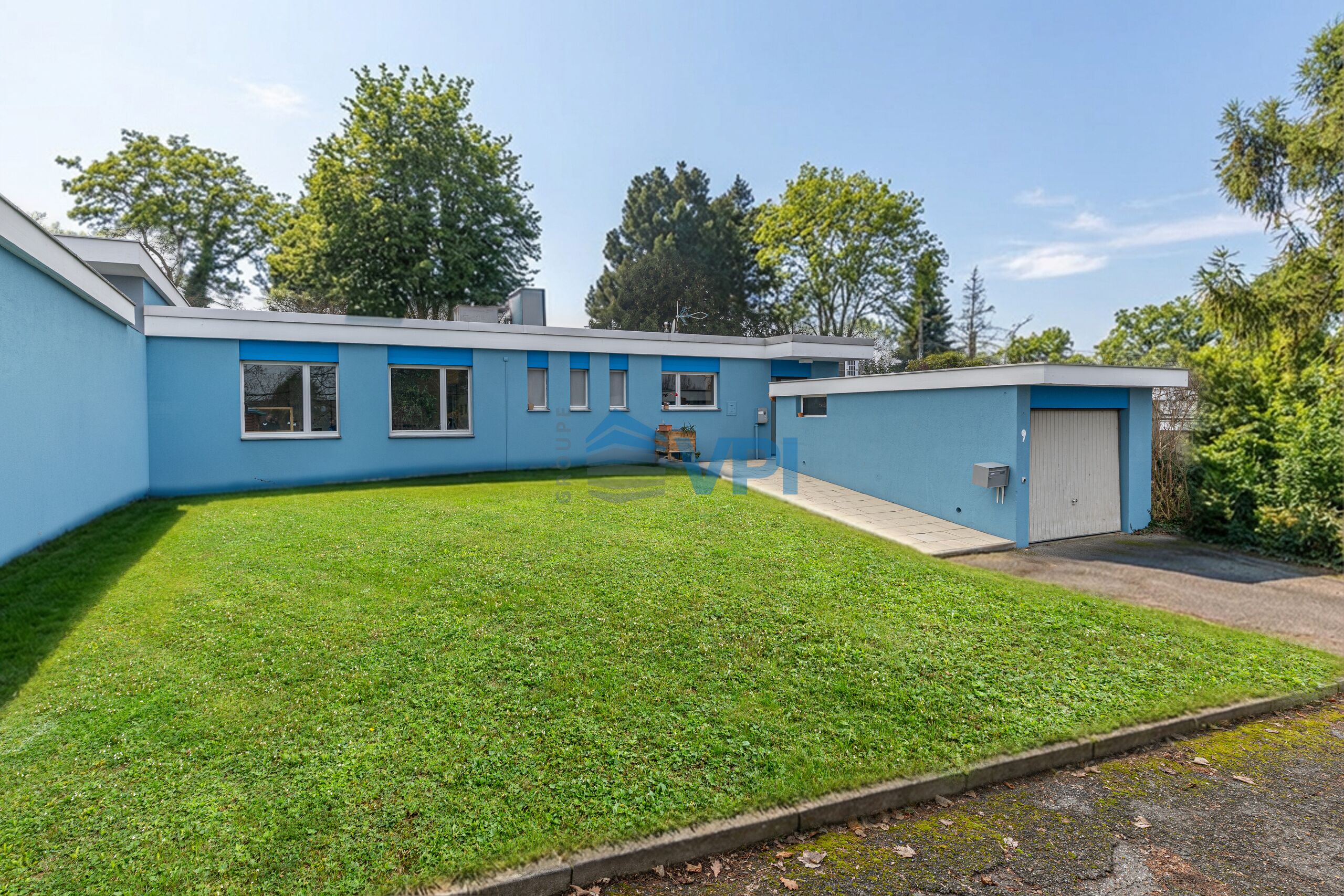 VPI Courtage SA est ravie de vous présenter cette villa de plain-pied de 154 m² habitables et 308 m² utiles qui séduit par ses volumes généreux dans le quartier résidentiel de Meyrin.